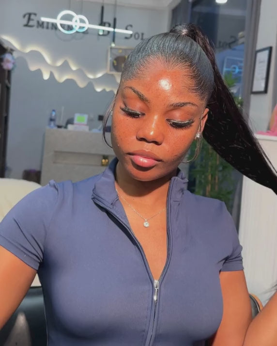 Simple, sleek, and effortlessly classy. This single frontal ponytail gives that clean, snatched look that never goes out of style. The lace and bundles can be reused for a long time without losing their quality.